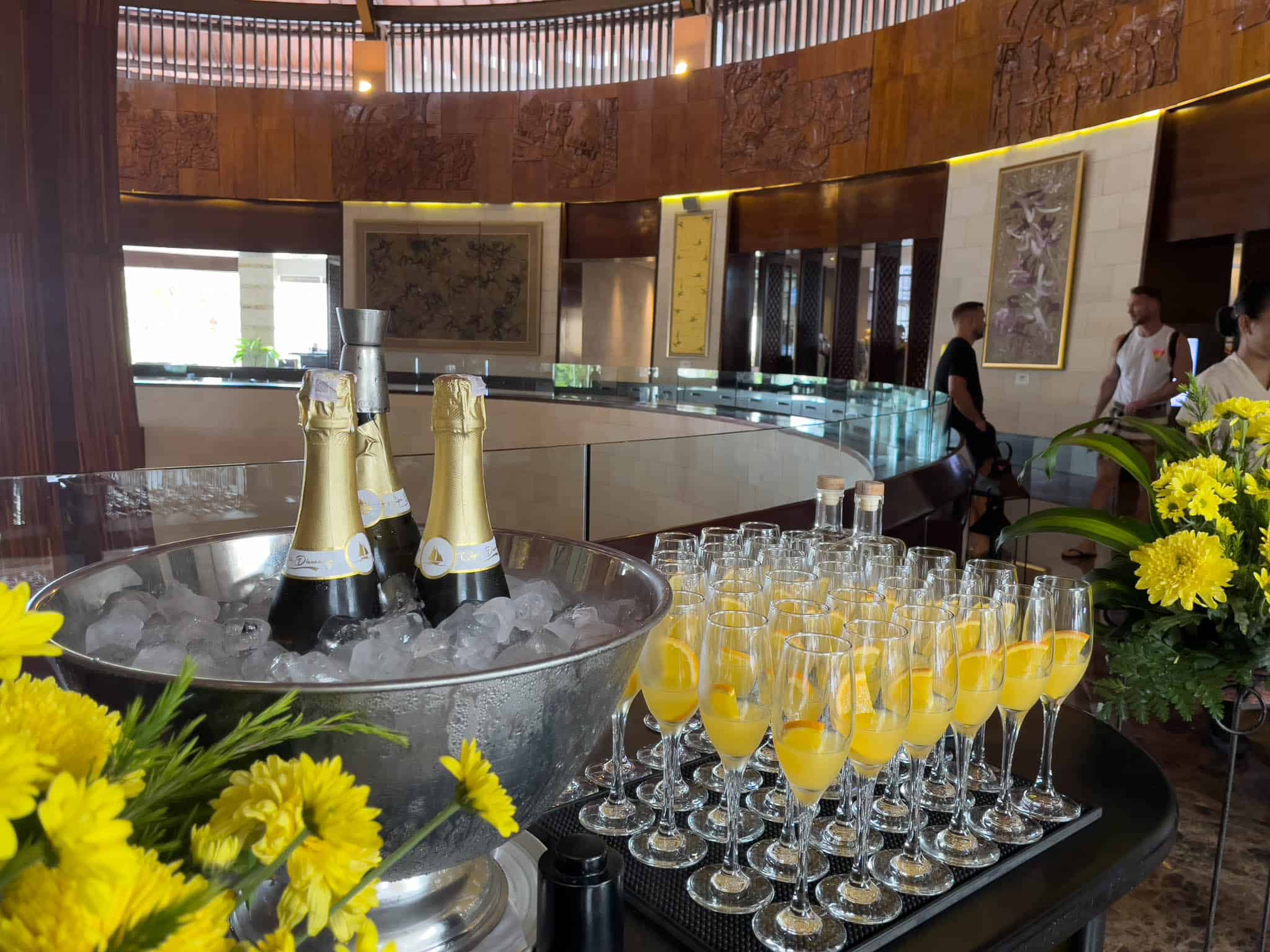 The Cucina Sunday Brunch is widely recognized as a signature event for the resort and an established dining destination in Nusa Dua. Hosted in the resort’s modern Italian restaurant, Cucina, the event is executed as a vast, high-end culinary showcase that extends beyond the typical dining space. The atmosphere is vibrant and stylized, reflecting the restaurant’s strong aesthetic, which features high-contrast tiles, mosaic patterns, and an open kitchen concept. The food selection is notable for its sheer scope and quality, encompassing multiple international cuisines rather than strictly Italian fare.