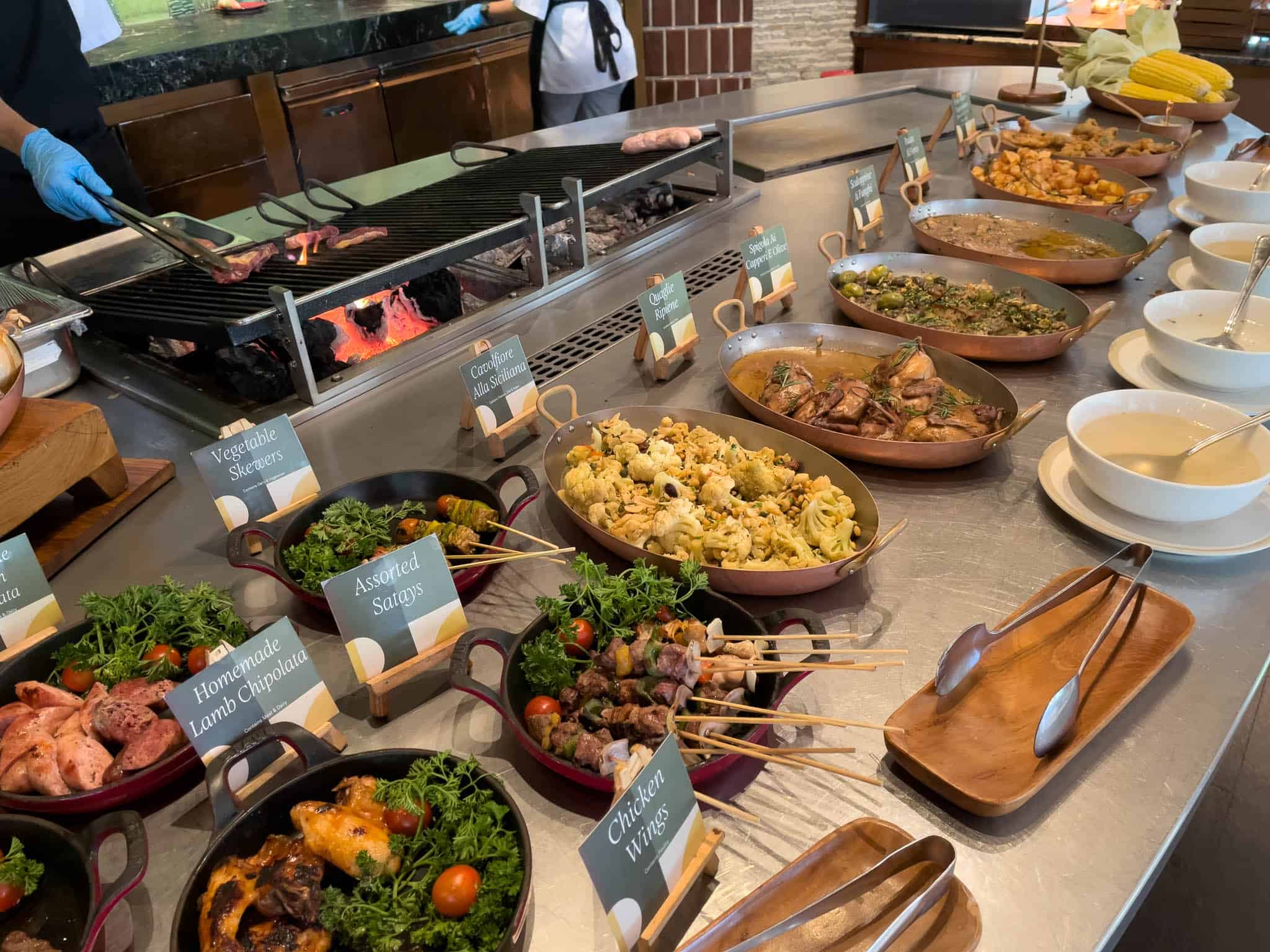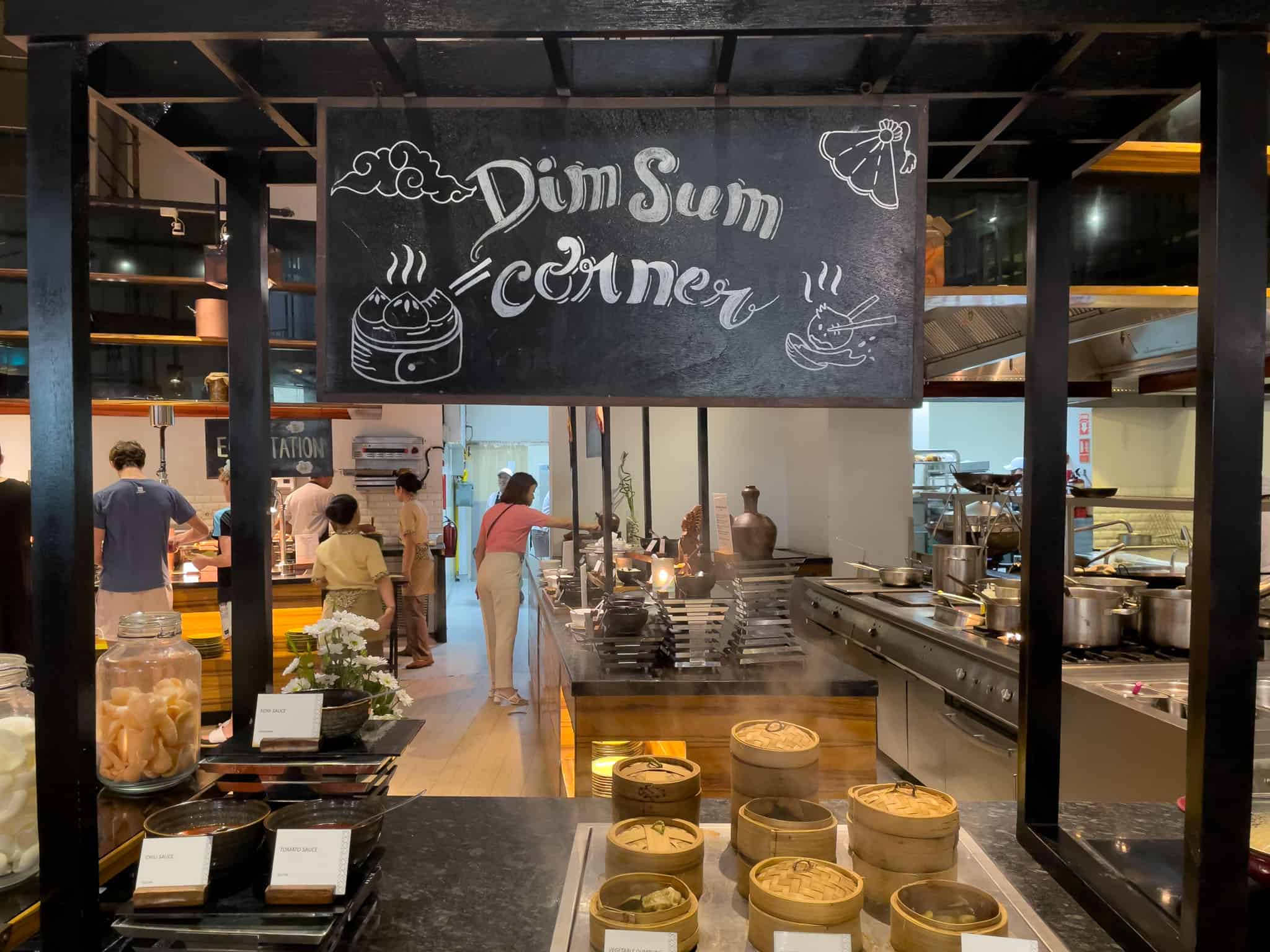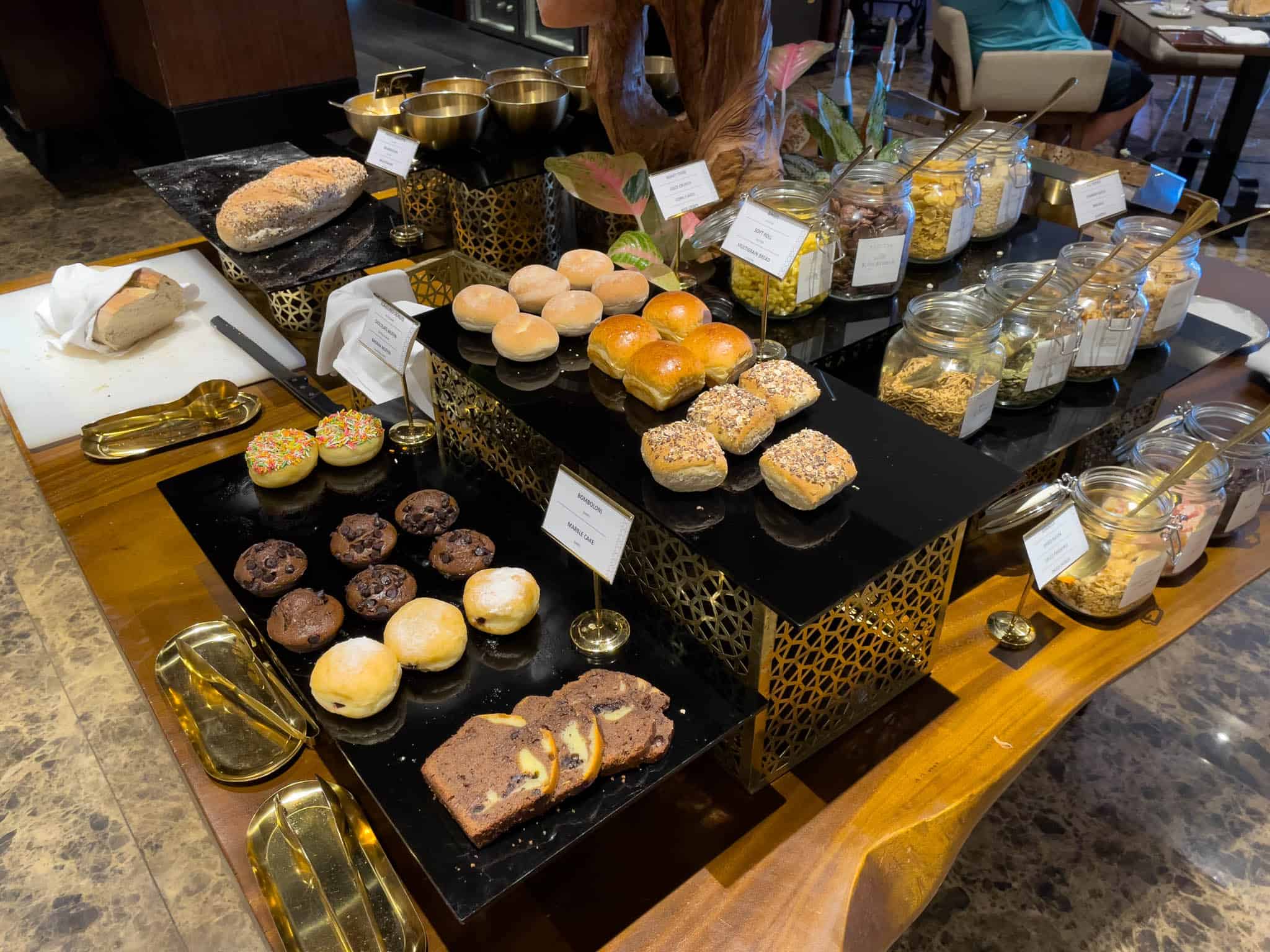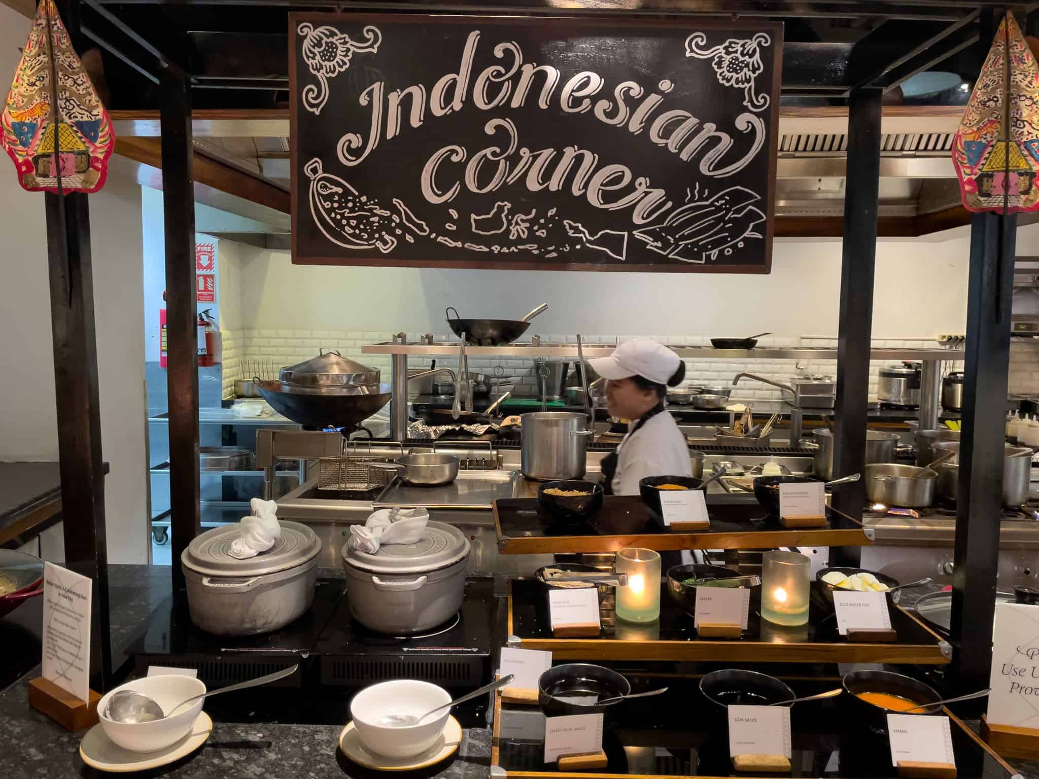 Stations typically include a comprehensive European selection with various breads, pastries, and cheeses; a dedicated Asian section featuring noodles, dumplings, and local Indonesian fare; and a specialized Indian station.