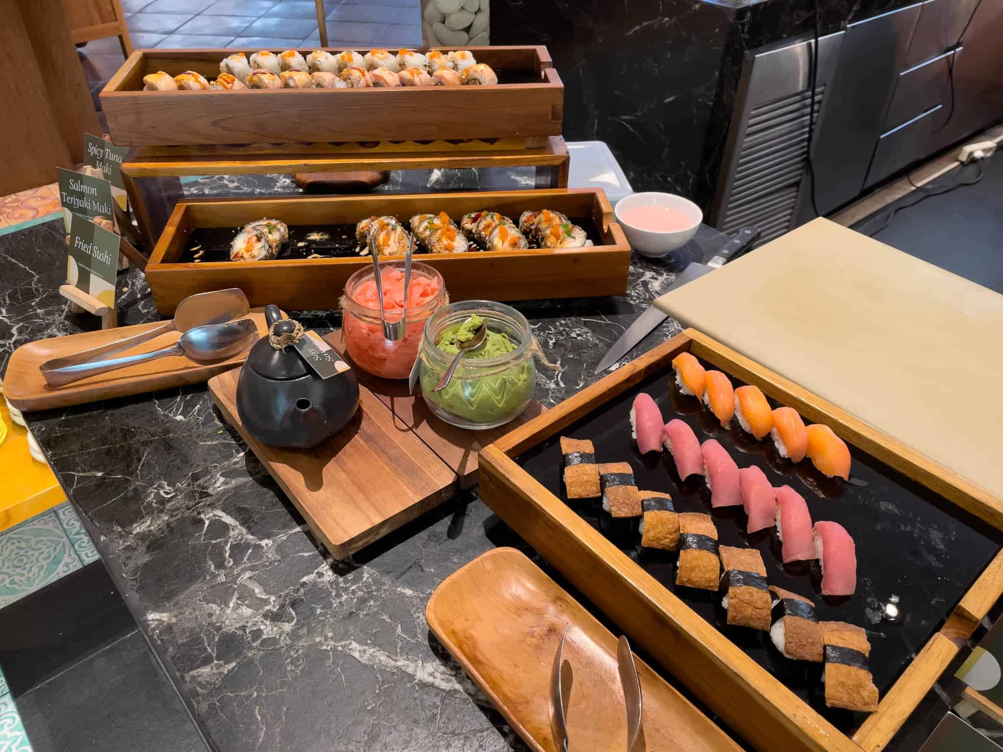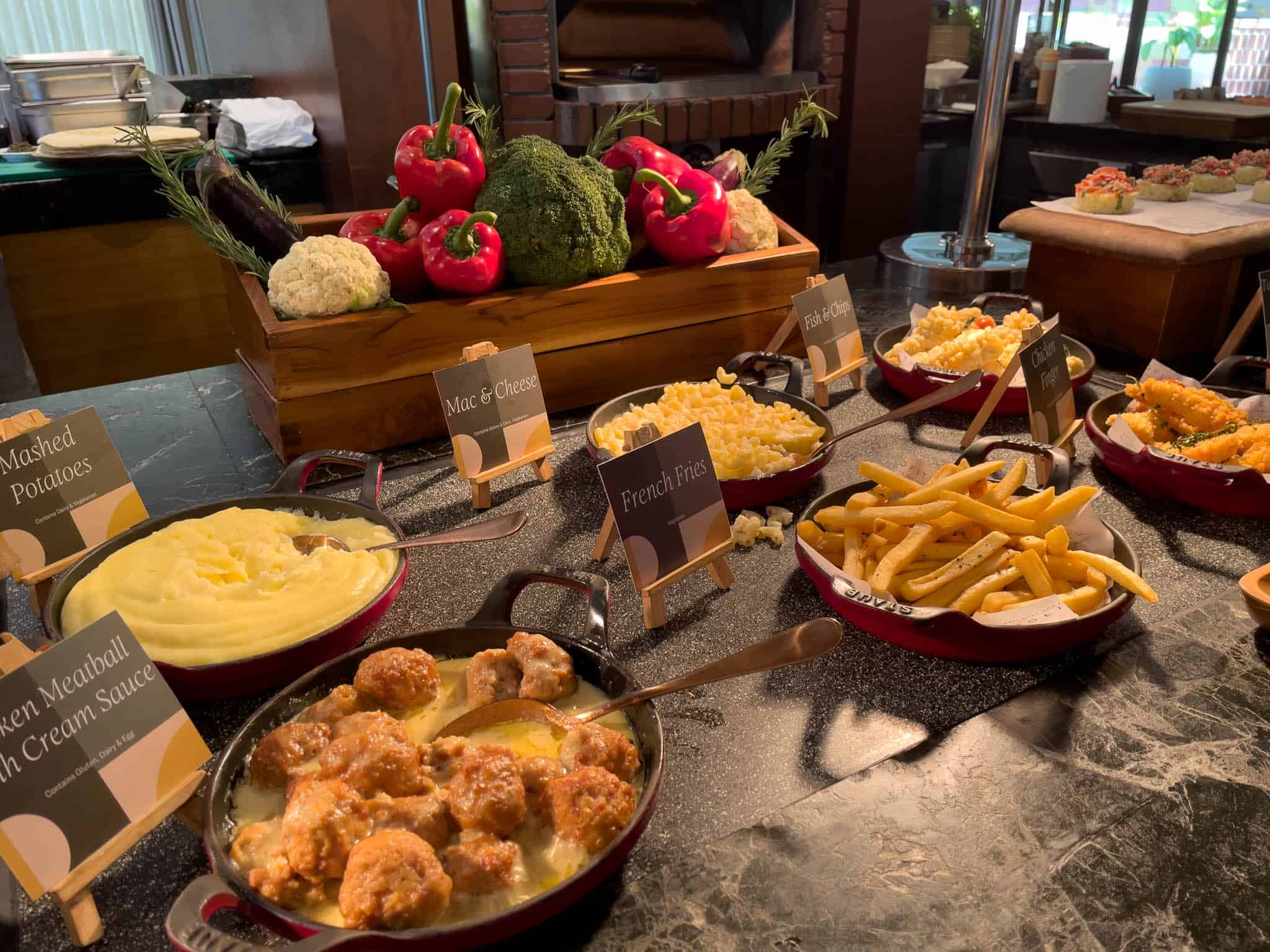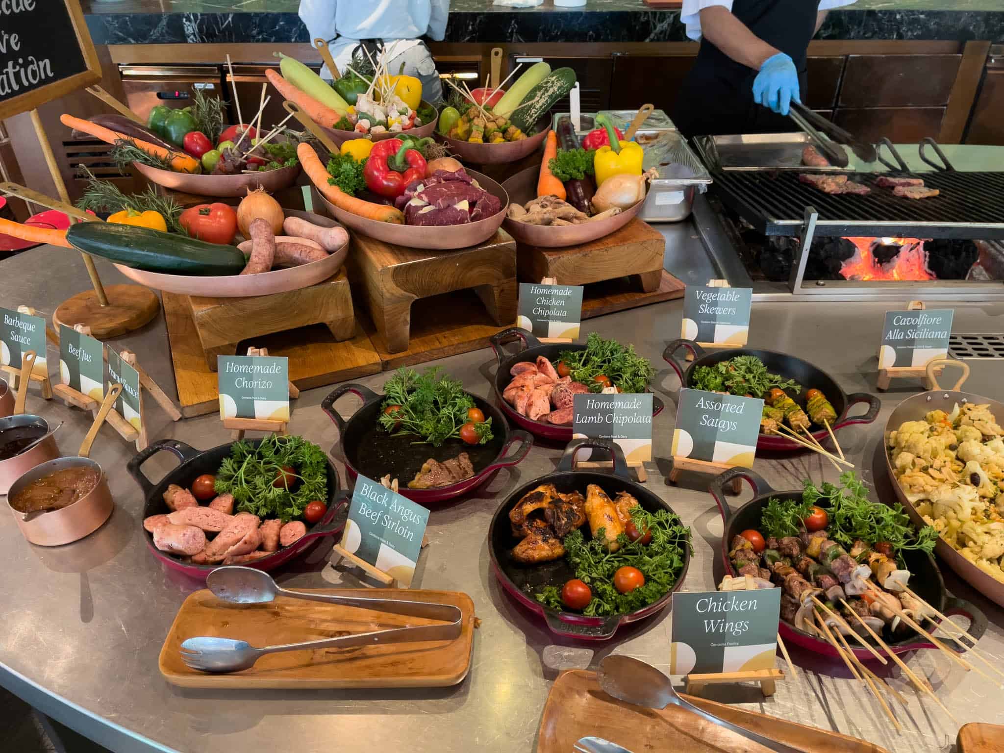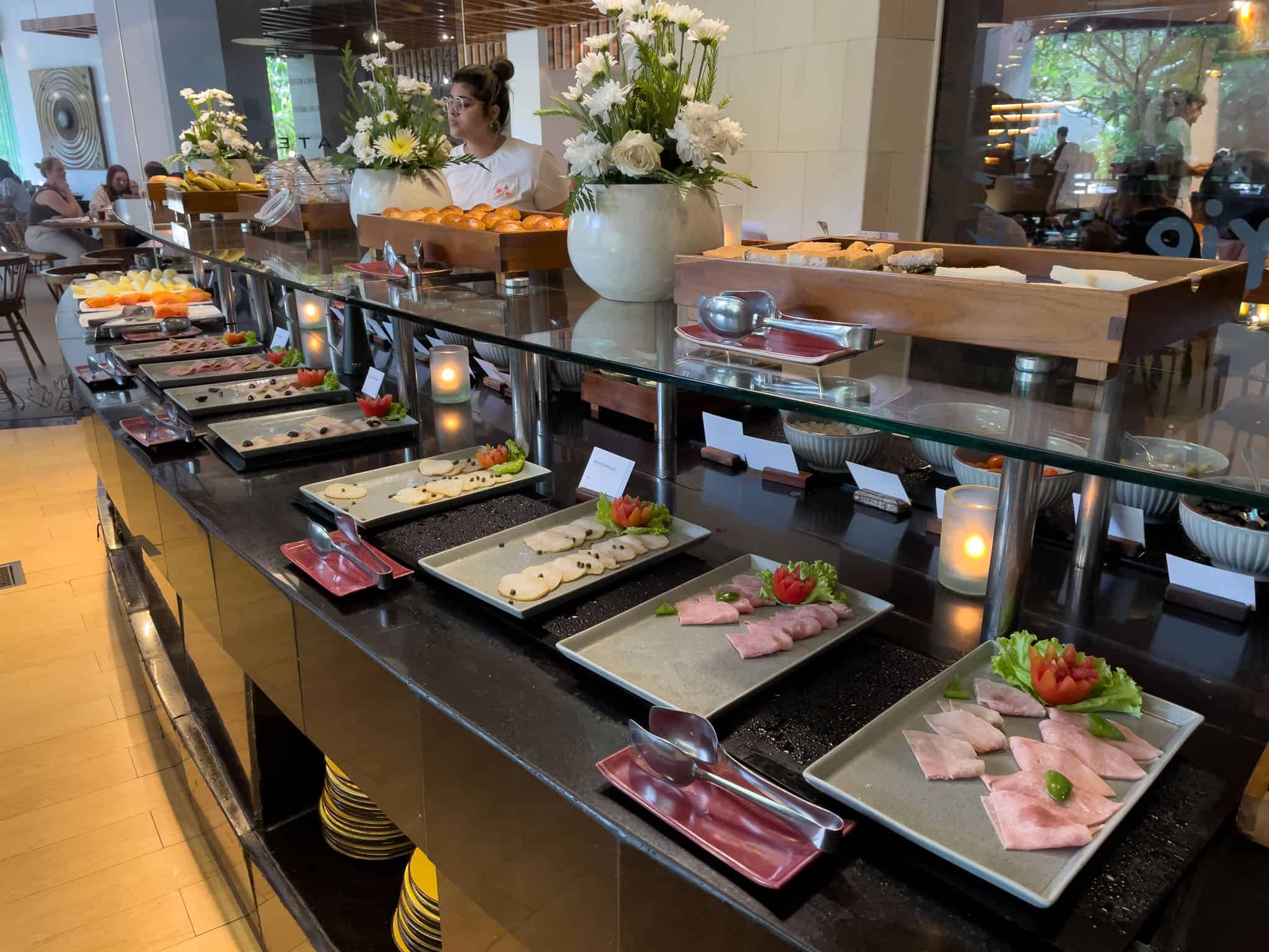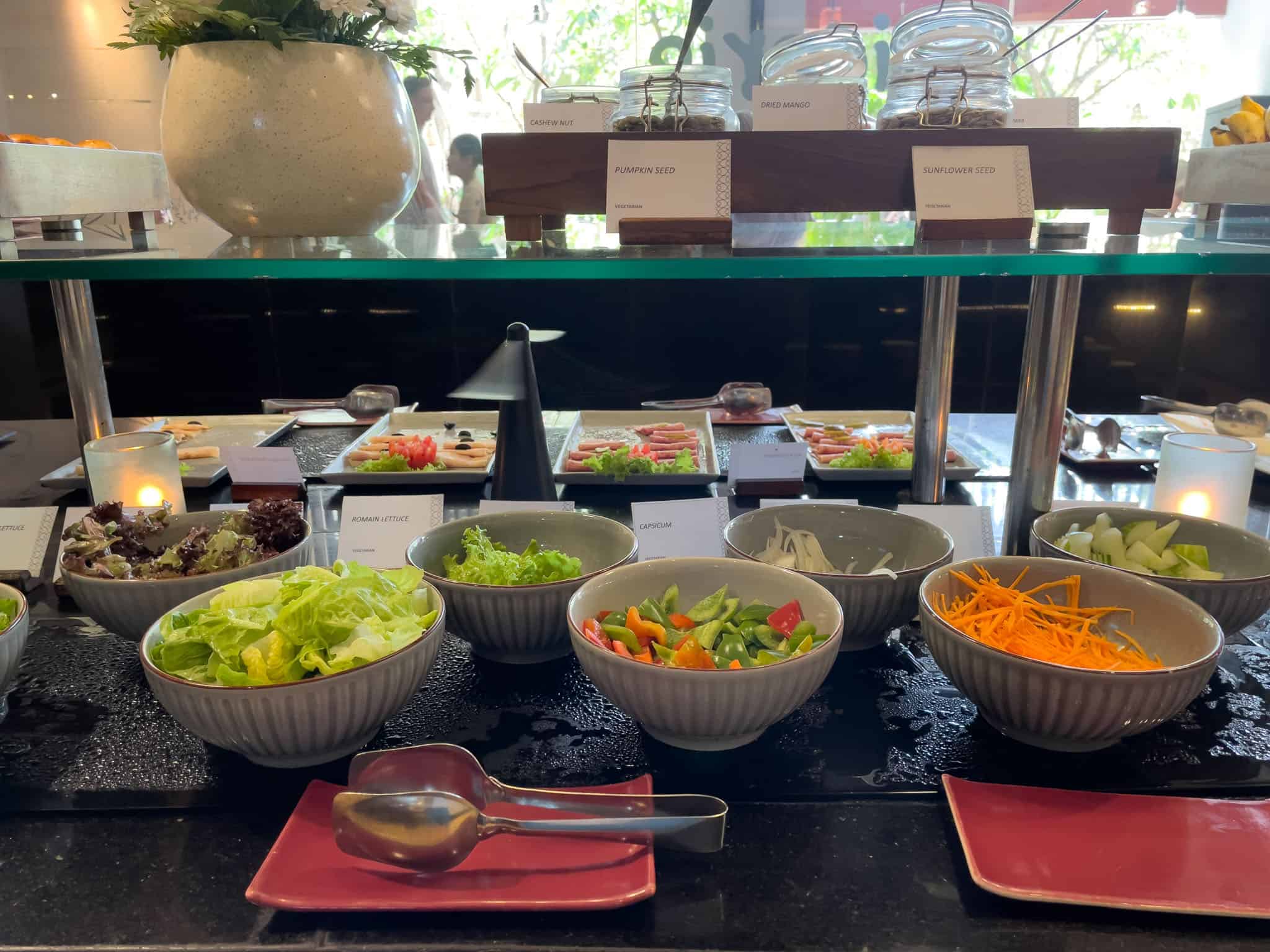 Stations typically include a comprehensive European selection with various breads, pastries, and cheeses; a dedicated Asian section featuring noodles, dumplings, and local Indonesian fare; and a specialized Indian station.