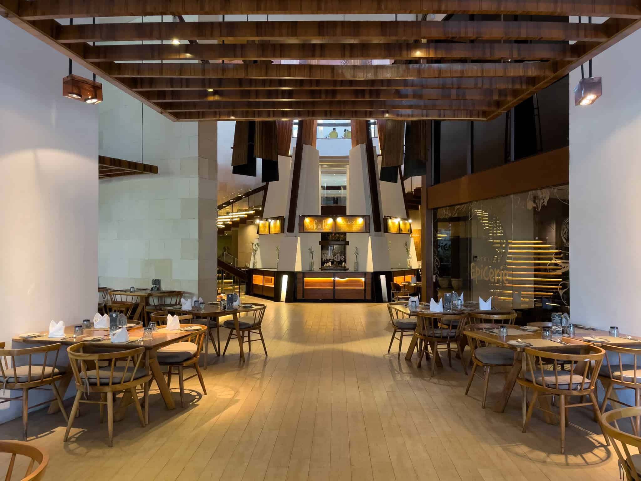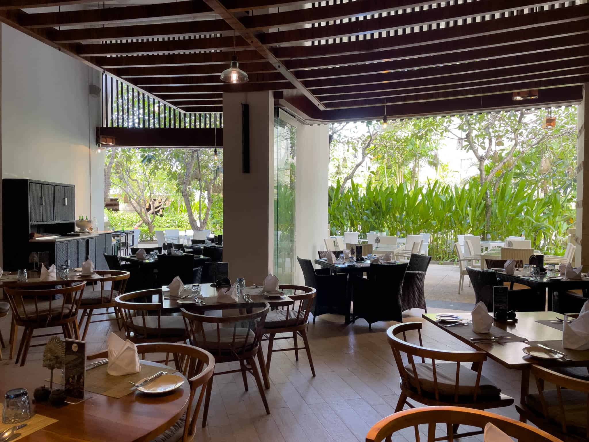 Kwee Zeen serves as the resort’s principal all-day dining venue and hosts the main international breakfast buffet. The restaurant is architecturally impressive, featuring high ceilings and a layout designed to manage large guest numbers efficiently across various live cooking stations. The culinary focus is broad, reflecting a range of global tastes necessary for a major international resort.