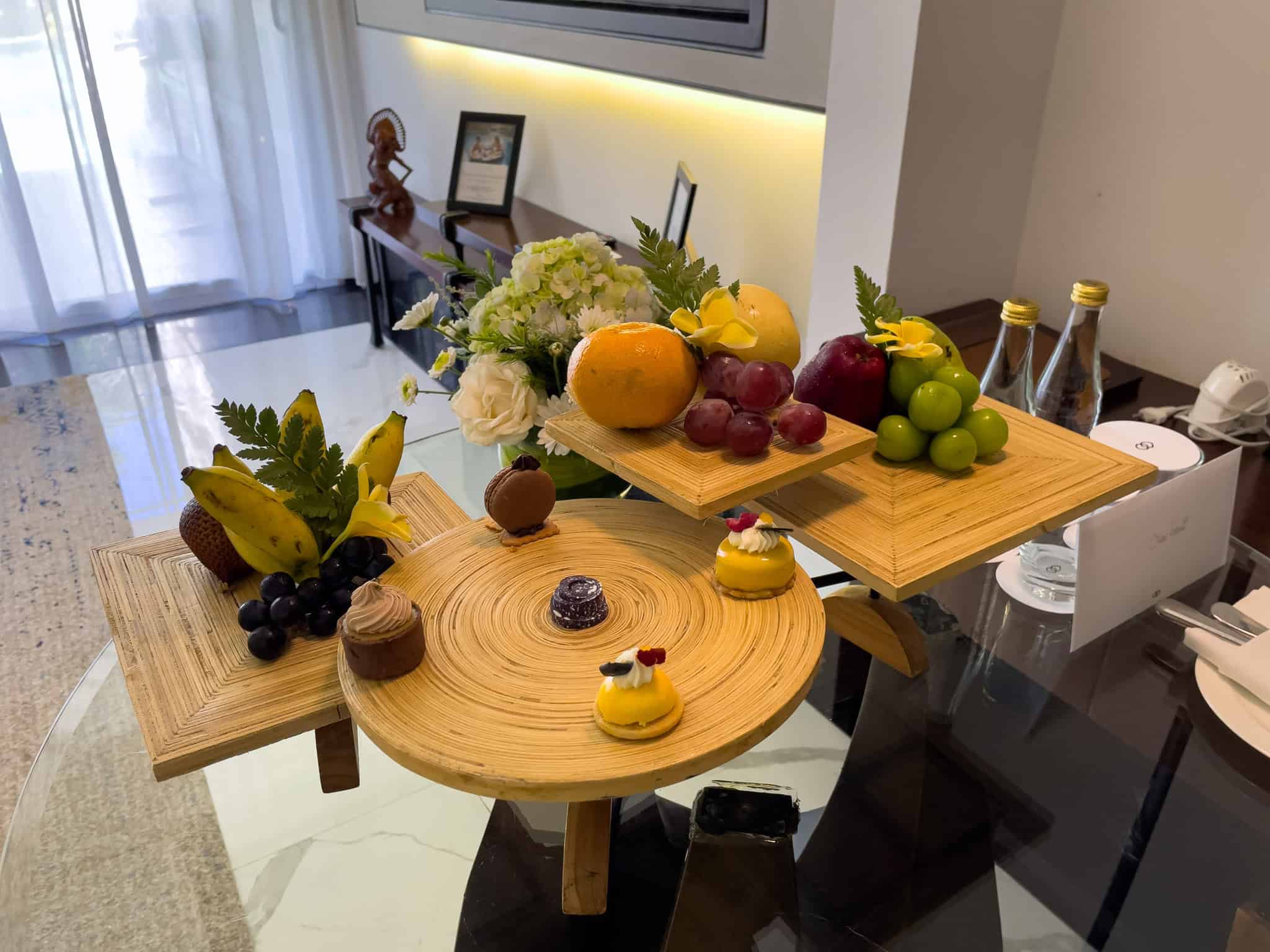 Guests often find a personalized welcome amenity upon arrival, featuring fresh local fruit and gourmet chocolates. For those interested in this room category, details can be found here: Luxury Room, Club Millésime Access, Pool Access