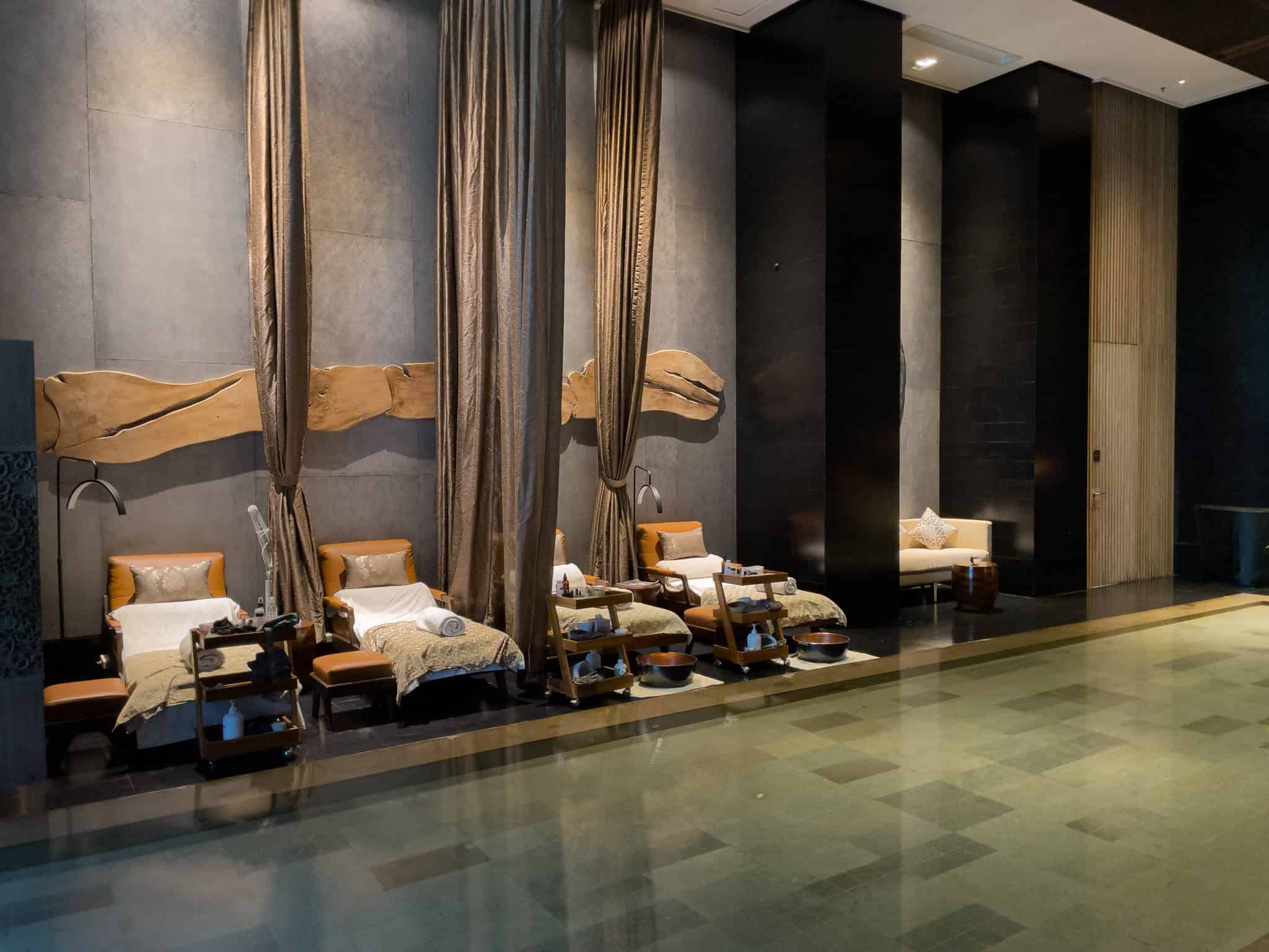 The spa experience often begins in an elegant consultation lounge, where guests are offered herbal tea and select their preferred massage oil or scrub at an aromatherapy station, tailoring the treatment to their specific needs. The amenity set is comprehensive, featuring specialized foot massage chairs in the common area and a sophisticated thermal area.